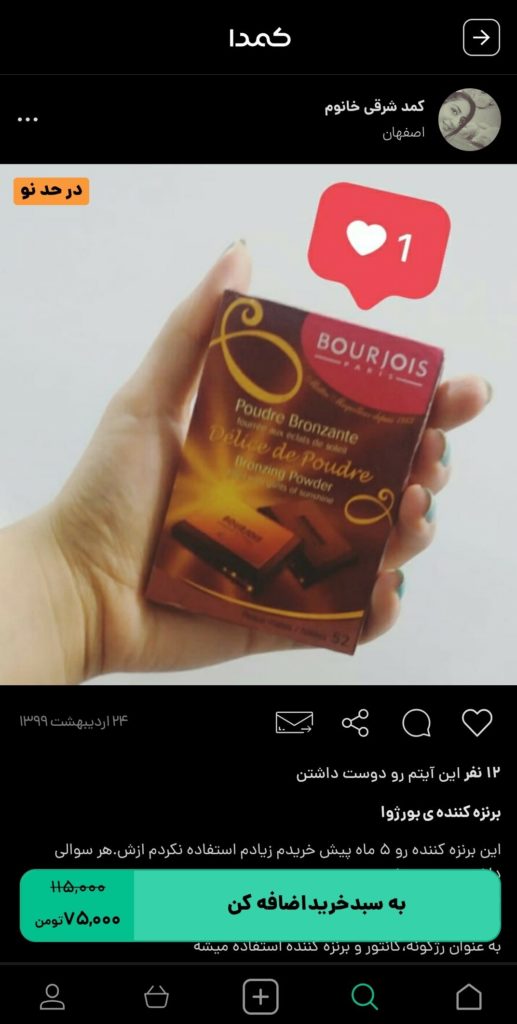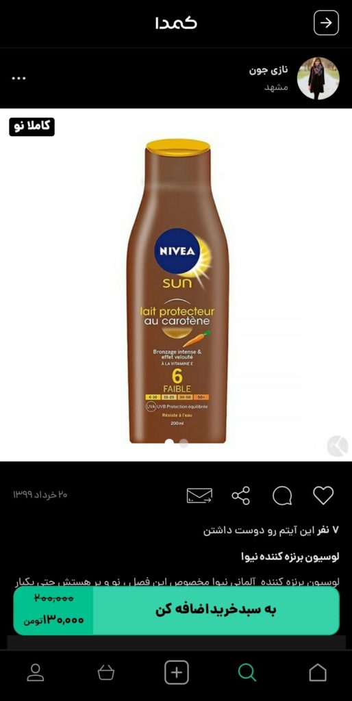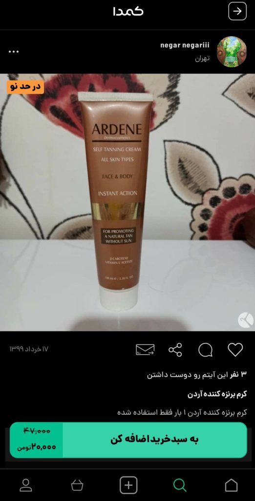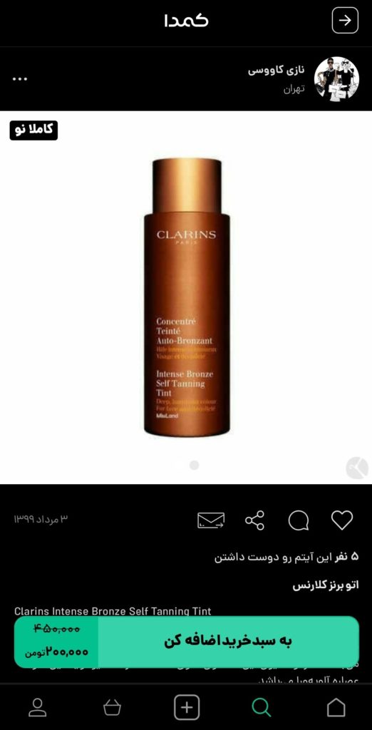 اگر شما هم پوست برنزه را جذاب میدانید؛ وقت آن است که با خرید بهترین برنزه کننده بدن زیبایی را به پوست خود هدیه دهید. برای خرید برنزهکننده بدن، پیشنهاد ما به شما، خرید از اپلیکیشن کمدا است. با خرید از اپلیکیشن کمدا از کالاهای باکیفیت، با قیمتهای مقرون به صرفه، همراه با گارانتی پرداخت بهرهمند خواهید شد. هنوز ماجرا تمام نشده است! اپلیکیشن کمدا این امکان را به شما میدهد تا کالاهای نو یا در حد نوی خود را با قیمتهای مناسب به فروش برسانید. در ادامه برخی از برنزهکنندههای بدن موجود در کمدا را مشاهده میکنید: