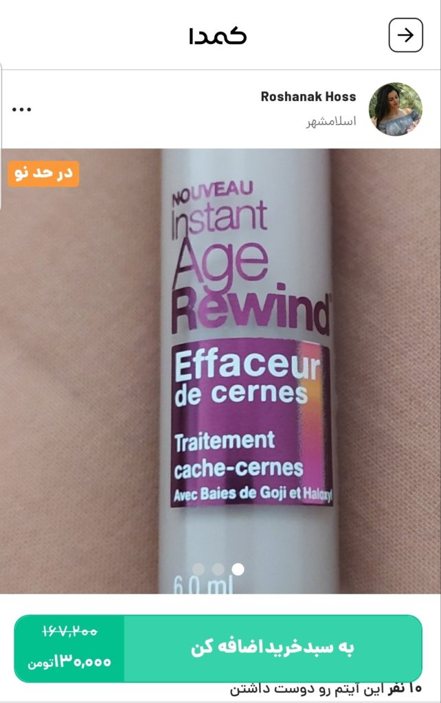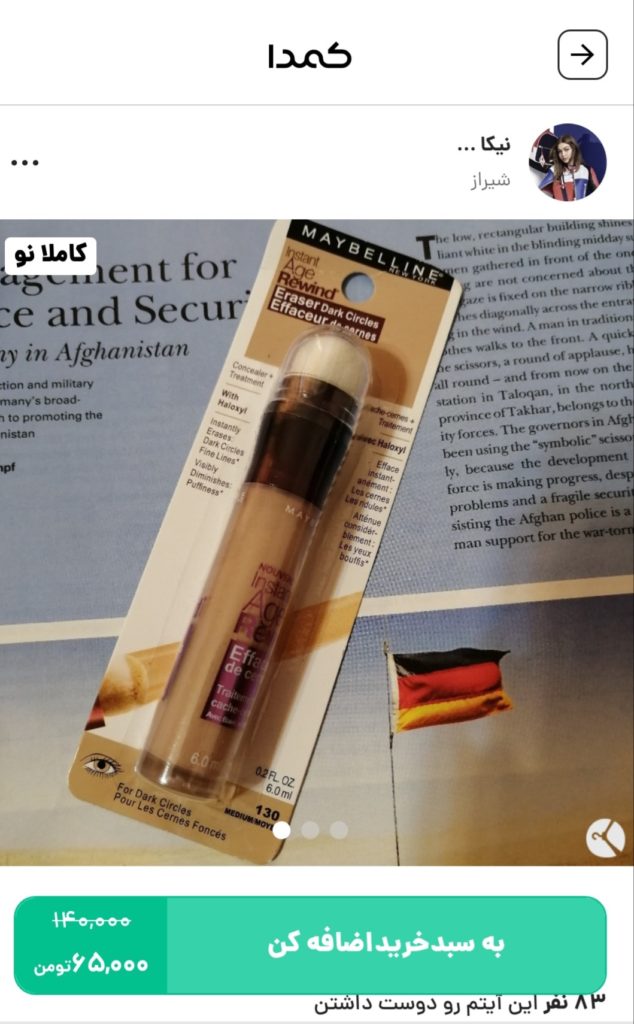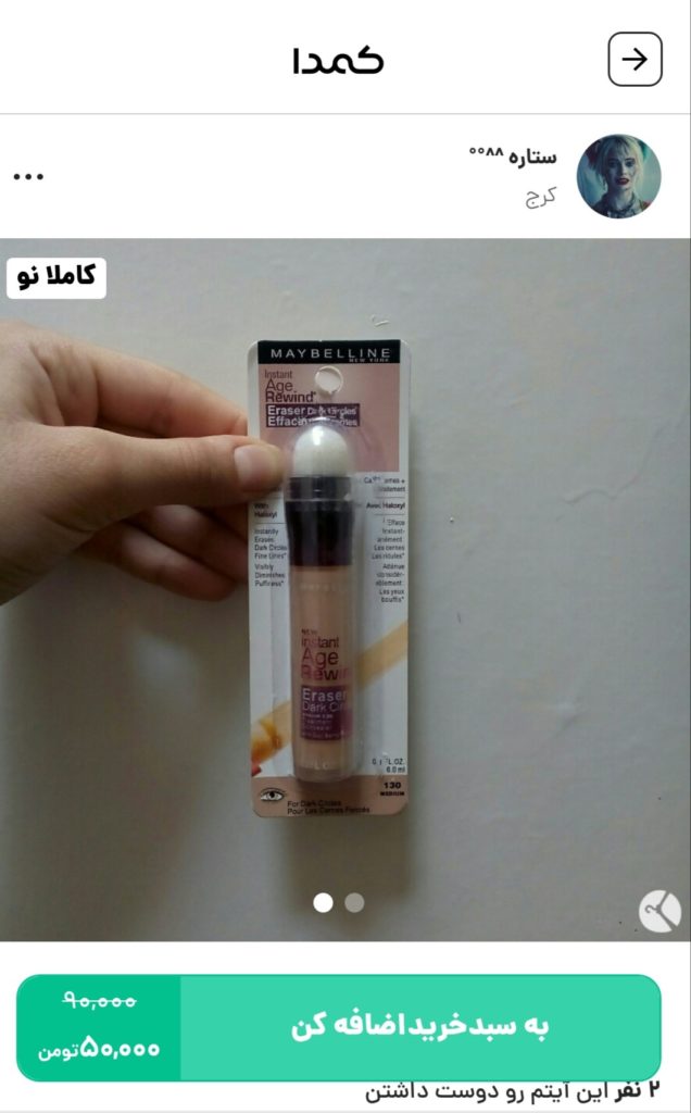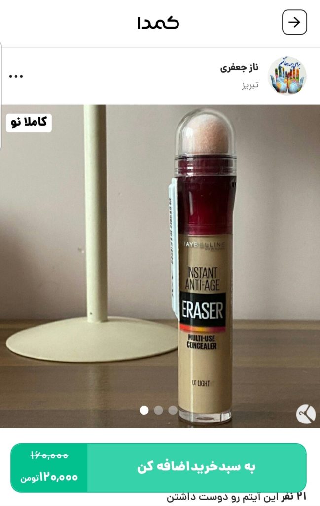 از آنجایی که چشم عضوی بسیار حساسی است، انتخاب کانسیلری که ویژگیهای گفته شده را داشته باشد بسیار اهمیت دارد. پس با یک خرید باکیفیت سلامتی چشم و پوست خود را تضمین کنید. پیشنهاد ما به شما اپلیکیشن کمدا است که به راحتی میتوانید خریدهای خود را با گارانتی پرداخت در آن انجام دهید یا اگر کانسیلر باکیفیت بدون استفاده و در حد نویی دارید، در کمدا به پول تبدیلش کنید. در ادامه چند نمونه از بهترین کانسیلر موجود در کمدا را مشاهده میکنید: