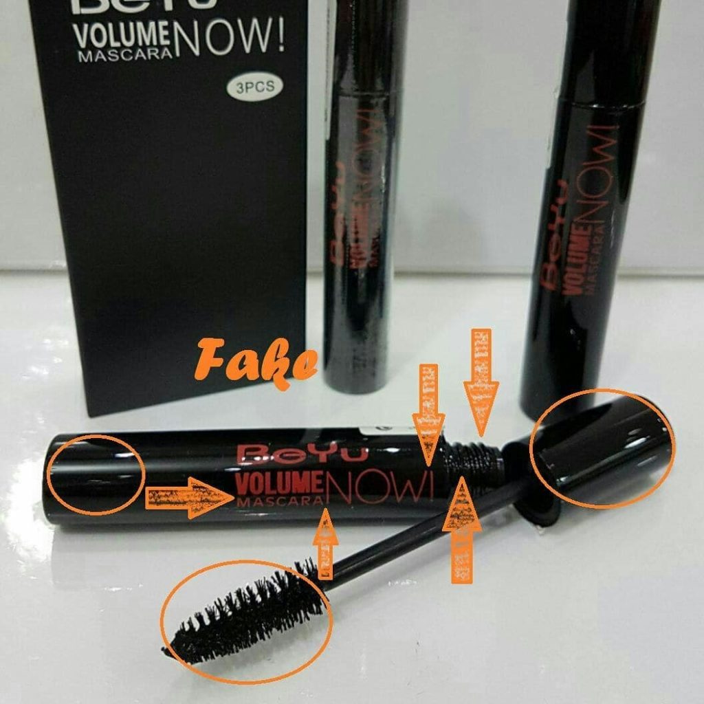 - در کالای اصل خط تقارن حرف v در کلمه volume خط تقارن حرف m در کلمه mascara است. در نمونه تقلبی این چنین نیست. در عوض اگر یک خط راست فرضی را در نظر بگیرید حروف اول دو کلمه mascara و volume (که در زیر یک دیگر قرار دارند) در یک راستا خواهند بود.
