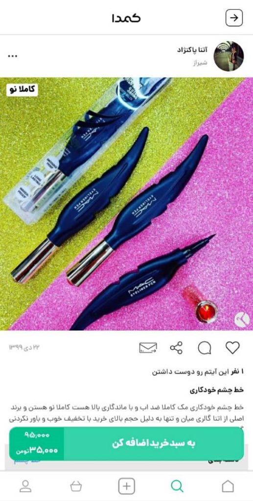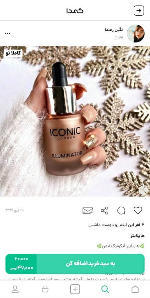 برای خرید قیمت مناسب انواع محصولات آرایشی و بهداشتی برای عروسی، عقد و دیگر جشن و مراسمهای مهم میتوانید از کمدا کمک بگیرید. کمدا شما را به مجموعهای از محصولات کاملا نو و باکیفیت وصل میکند که بتوانید با تحفیفهای بالای ۵۰% خرید کنید. بنابراین، برای نصب این اپلیکیشن کاربردی و جذاب عجله کنید. در ضمن، اگر این روزها محصولات آرایشی و بهداشتی هدیه گرفتید که مورد استفاده شما نیستند، میتوانید با قیمت مناسب برای فروش آنها از طریق کمدا آنها را به پول تبدیل کنید. در ادامه چند نمونه از محصولات آرایشی و بهداشتی موجود در کمدا را مشاهده میکنید: