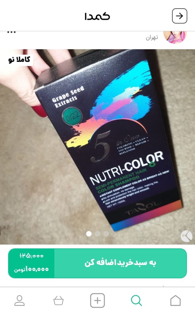در خرید رنگ مو فاکتوری که بیش از همه چیز باید به آن توجه داشته باشید، میزان کیفیت و میزان سازگاری ترکیبات رنگ با سلامت موهایتان است، زیرا رضایت شما از نتیجه کار تا حد زیادی به کیفیت رنگی که انتخاب میکنید بستگی خواهد داشت. بنابراین در خرید رنگ مو کیفیت را اولویت قرار دهید. ما برای شما در این مقاله به صحبت درباره رنگ کردن مو با زردچوبه پرداختیم. و حالا نیز پیشنهادهای جذابی برای خرید رنگ مو برای شما خواهیم داشت. شما میتوانید خرید رنگ مو از اپلیکیشن و پلتفرم هیجانانگیز و دنیای پر از تخفیف کمدا را انتخاب کنید. اگر هنوز کمدا را خوب نمیشناسید لازم است بگوییم که شما با کمک اپلیکیشن کمدا میتوانید تمام کالاهای مورد نیازتان را با تخفیفهای فوقالعاده و همیشگی بخرید و خاطرتان جمع باشد که کمدا با گارانتی پرداخت، فضای امنی برای خرید و فروش شما فراهم کرده است. کافی است در کمدا نام محصول و کالای مورد نیازتان را در قسمت جستجو سرچ کنید، تا صدها نمونه از آن کالا را با قیمتهایی باور نکردنی پیدا کنید. فراموش نکنید که شما در کمدا میتوانید هم یک خریدار باشید و هم یک فروشنده! به این شکل که میتوانید کالای نو و در حد نو خود را که دیگر در کمدتان جایی ندارد، با قیمتی مناسب در کمدا به فروش برسانید و هزینهاش را به راحتی دریافت کنید و به این ترتیب اشیای بلا استفادهتان را به پول تبدیل کنید. حالا با هم نمونههای از محصولات مربوط به رنگ مو موجود و قابل فروش در کمدا را خواهیم دید.