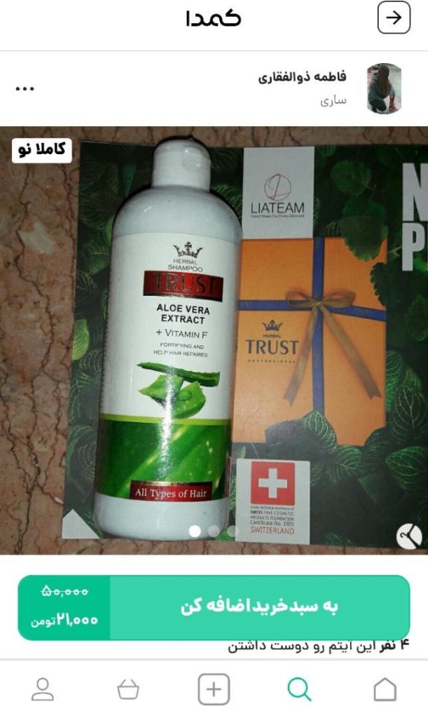 افرادی که با ریزش مو دستوپنجه نرم میکنند، همیشه به دنبال راهی برای درمان ریزش موی خود هستند؛ از درمانهای خانگی و پیشنهادی دوستان گرفته تا انواع شامپوها، مکملها و قرصهایی که برای ریزش مو و رشد مجدد مو در بازار وجود دارد. برای اثربخشی هرکدام از این روشها نظرات مختلفی وجود دارد. بعضی از مؤثر بودن آن و برخی نیز درباره اثر منفی و عوارض جانبی آنها حرف میزنند. در کنار تمامی این روشها، خرید و مصرف محصولات مناسب برای حفظ سلامت و بهداشت مو بسیار مهم هستند. برای این منظور ما به شما خرید از اپلیکیشن کمدا را پیشنهاد میکنیم. در کمدا می توانید هر آنچه که برای زیبایی یا رسیدگی به موی خود احتیاج دارید را جستجو و خریداری کنید. اپلیکیشن کمدا با تخفیفات همیشگی و درگاه پرداخت امن، تجربه خرید اینترنتی راحت و مطمئن را برای شما ممکن کرده است. در ادامه نمونه ای از این محصولات را مشاهده می کنید: