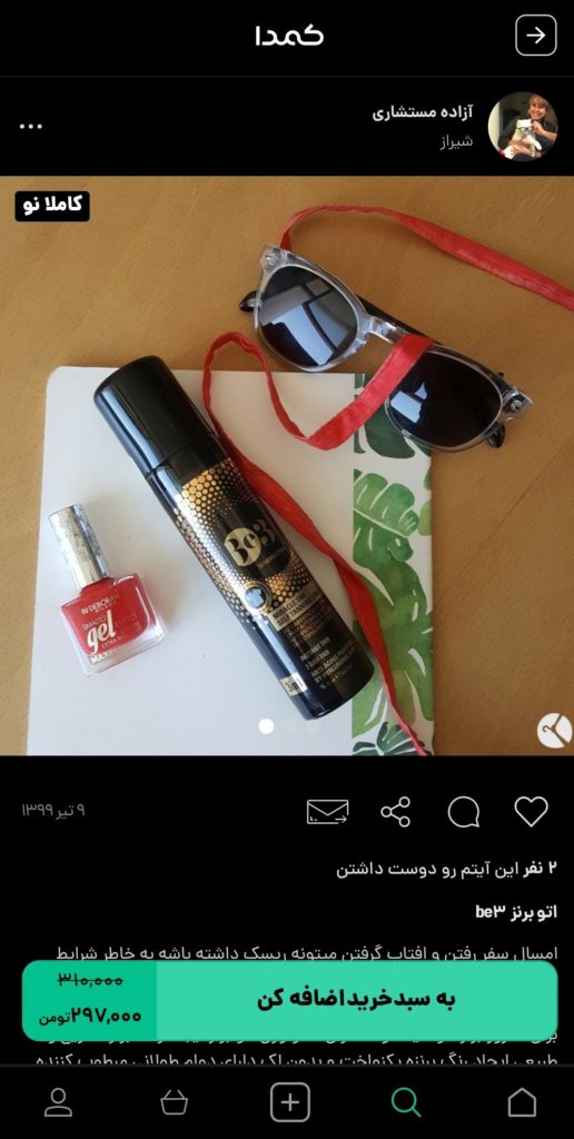 با خرید از اپلیکیشن کمدا، از کالاهایی باکیفیت، همراه با قیمتهای مقرون به صرفه و گارانتی پرداخت، بهرهمند خواهید شد.