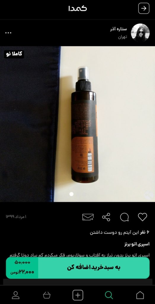 به طور کلی در بین لوازم آرایشی برنز کننده، اسپریها به دلیل نحوه استفاده بسیار آسان و زمان اثرگذاری کمتر، بیشتر مورد استفاده قرار میگیرند. اگر شما هم به یک مهمانی یا سفر تفریحی ناگهانی، دعوت شدهاید و نیاز دارید هرچه سریعتر پوستی برنزه داشته باشید؛ خرید اسپری برنز کننده فوری به کار شما، خواهد آمد. برای خرید این اسپریها پیشنهاد ما به شما، خرید از اپلیکیشن کمدا است. با خرید از اپلیکیشن کمدا، از کالاهایی باکیفیت، همراه با قیمتهای مقرون به صرفه و گارانتی پرداخت، بهرهمند خواهید شد. با نصب این اپلیکیشن، علاوه بر این که سبد خرید خود را با کالاهایی متنوع و باکیفیت پر خواهید کرد؛ میتوانید با فروش کالاهای نو یا در حد نوی خود نیز، شعبهای دیگر از فروشگاه خود را باز کنید یا کمد شلوغ خود را خلوت کنید. در ادامه برخی از اسپریهای برنز کننده موجود در کمدا را مشاهده میکنید: