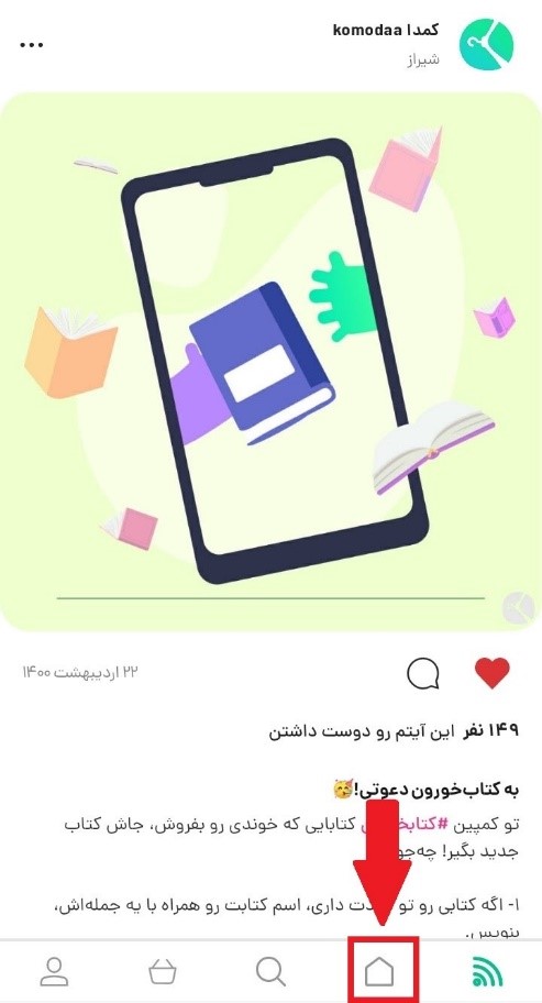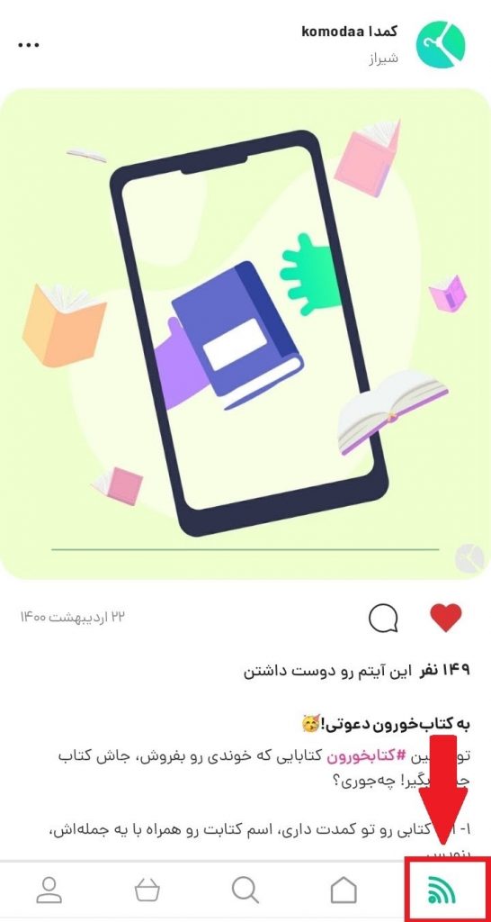 - بعد اینکه اپلیکیشن کمدا رو باز کردی، وارد قسمت فید اپلیکیشن شو.