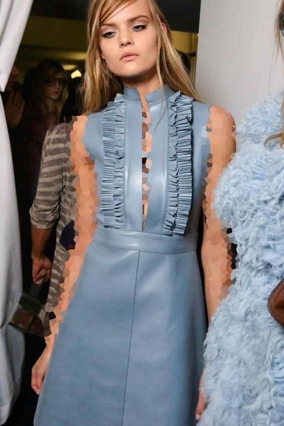 یکی از راههایی که میتوانید لباس مجلسی چاک دار خود را جذابتر کنید، این است که به جای این که چاک لباس را مانند یک برش نشان دهید، میتوانید آن را با کمی چین (خصوصا در بالای برش) به صورت جمع شده نشان دهید. این روش برای افرادی که لباسهای بسیار ساده را میپسندند، بسیار مناسب است. بهترین مثال را میتوانید در پیراهن چاکدار بسیار زیبا و ساده جی جی حدید در رانوی 2020 برند jacquemus ببینید.