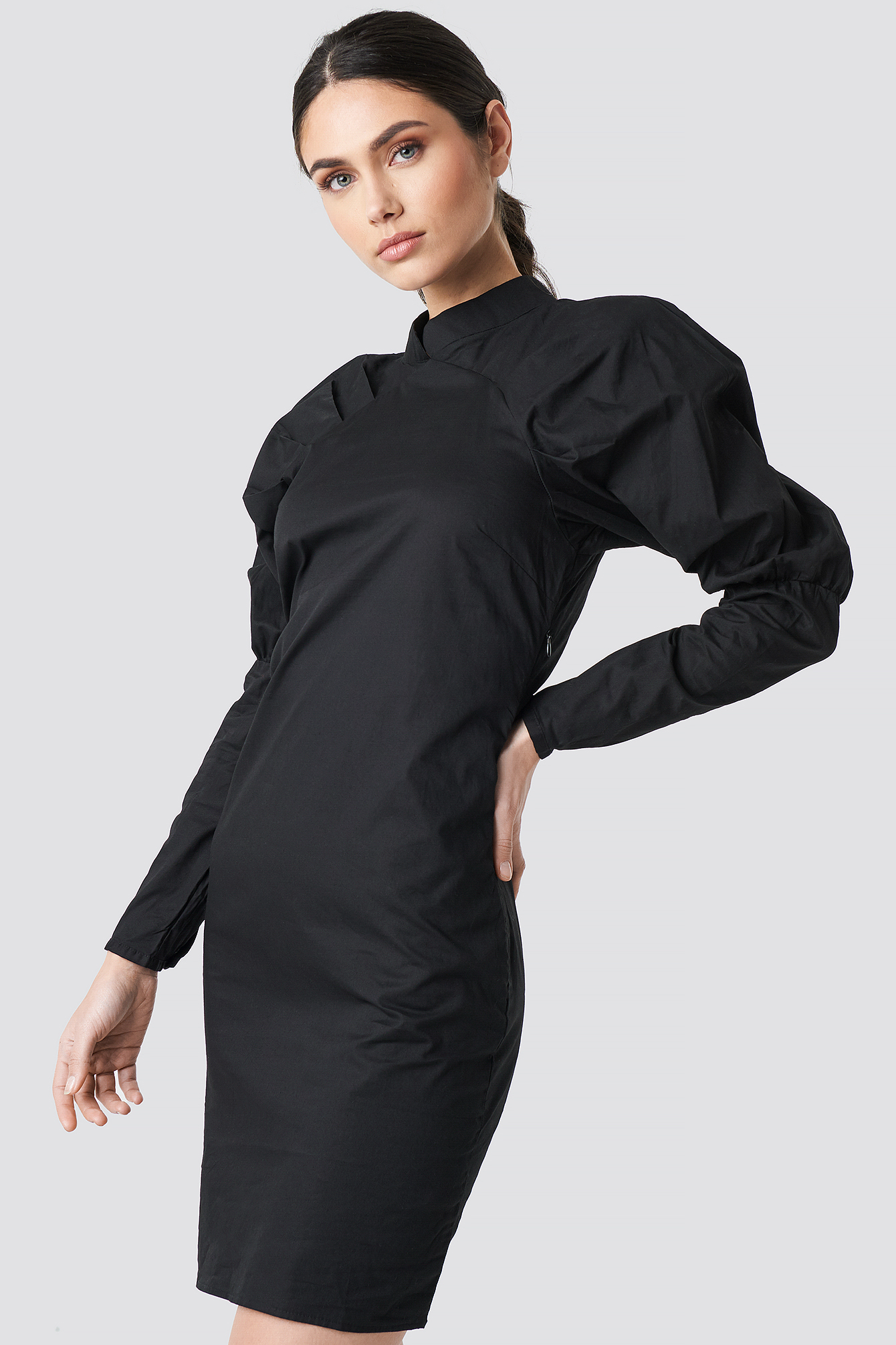 اگر مایلید پایین آستین ها پف داشته باشد، میتوانید مدل یقه را قایقی یا ایستاده و مدل دامن را ماهی یا کمی پفدار انتخاب کنید.